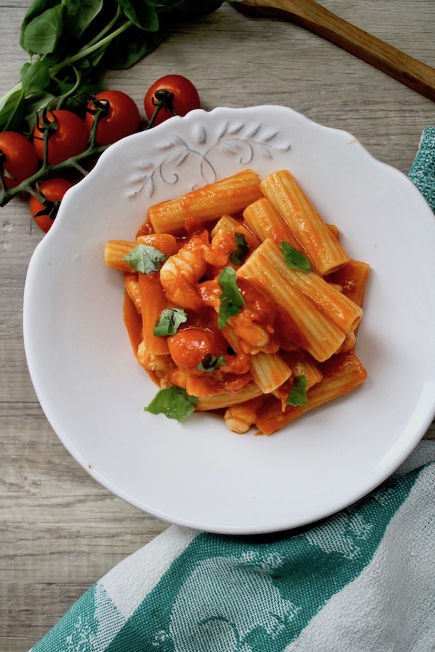Receta: Pasta con gambas, tomate y ajo